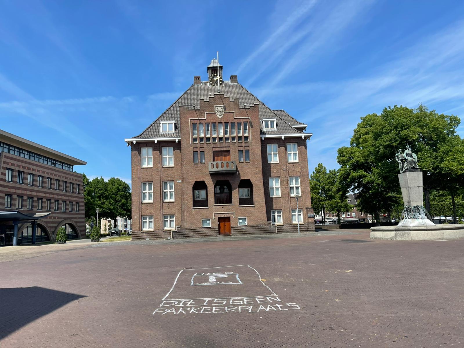 Gevolgd door parkeerplaatsen van stoepkrijt, waar de bezoekers aan het centrum wél gratis konden parkeren. Dit vanwege de grote irritaties aan de betaalde parkeerplaatsen in het centrum. Dit terwijl het daar voorheen ook gratis parkeren was.